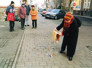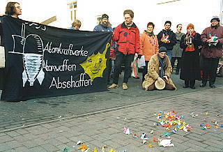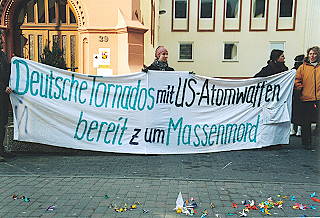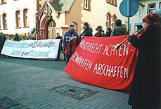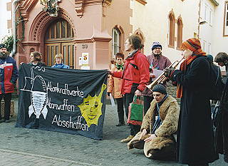 Cochem (Mosel), 3.3.2004, Aktion vor dem Amtsgericht anläßlich der Gerichtsverhandlung gegen AtomwaffengegenerInnenHintergrund-Information