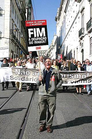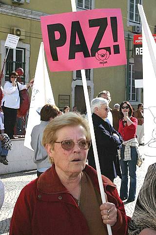| Lissabon, 20.3.2004, Protest anläßlich des ersten Jahrestages des Überfalls auf den Irak (Fotos: Arnaldo da Silva) |