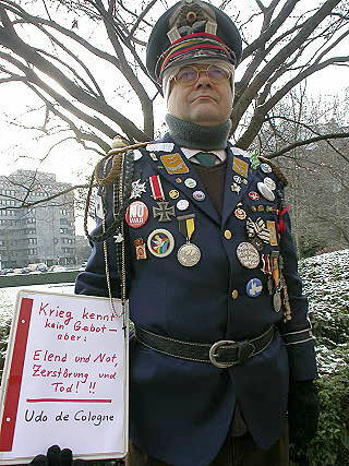 ![]() 8 Friedensgeneral Udo de Cologne: "Krieg kennt kein Gebot - aber: Elend und Not, Zerstörung und Tod!!" |
