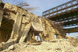 ![]() 26 Libanon im November 2006 - zerstörte Straße und Brücke vor Tyr |