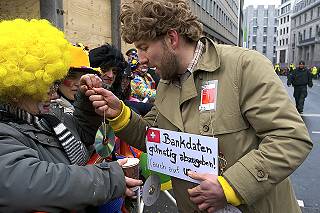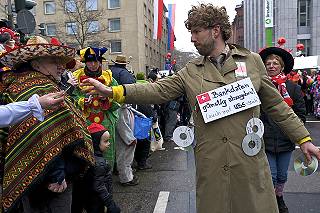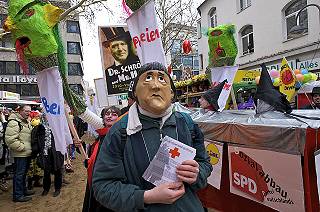 | Köln, 15.2.2010 (2) - "Vom Klüngel jebütz" - G8-Pappnasen beim Rosenmontagszug (Fotos: hs) |