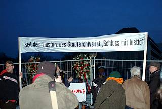 | Köln, 3.3.2010 (2) - "Schutt und Schande" - Gedenkveranstaltung zum Jahrestag des Einsturzes des Stadtarchivs (Fotos: Jochen Lubig) |