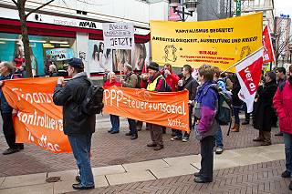 | Essen, 20.3.2010 (2) - Demonstration "Wir zahlen nicht für Eure Krise - Zwingen wir die Profiteure zur Kasse" (Fotos: Karl-Reiner Engels) |