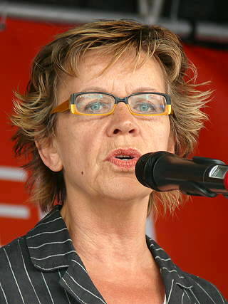 ![]() 4 Ulli Volland-Dörmann vom AWO-Kreisverband Köln. - Ziel der Montagsdemo vom 13.9.2004 gegen 1-Euro-Job-Lohndumping |