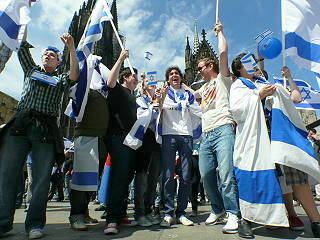 ![]() 69 Pro-Israel-Agitation - zum Abschluß erklingt die HaTikwa - Israels Nationalhymne |
