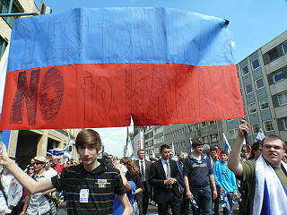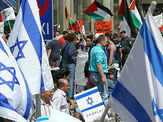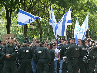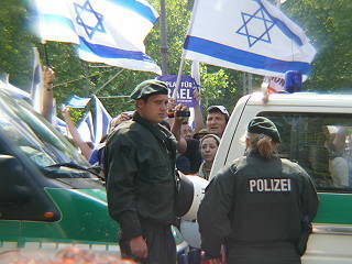 ![]() 39 Pro-Israel-Agitation - im Hintergund der Protest dagegen |