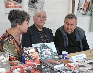 4 jW Autorin Claudia Wangerin signiert am Stand der jW ihr Buch 'Die DDR und ihre Töchter'