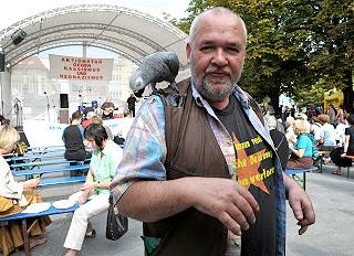 13 Werner Schneidewind und sein Papagei „Querkopf“, der den selben Namen trägt wie die von ihm gegründete Zeitung