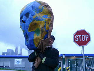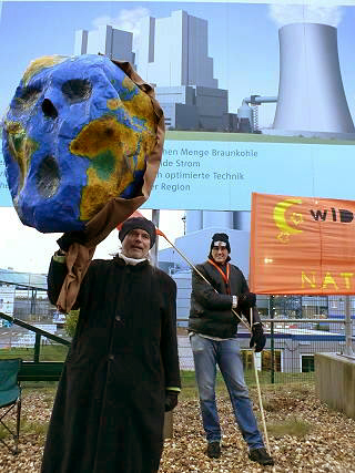 | Neurath, 16.10.2010 - "Wer anderen eine Grube gräbt..." - Klima-Schutz-Aktion am RWE-Braunkohle-Kraftwerk Neurath |