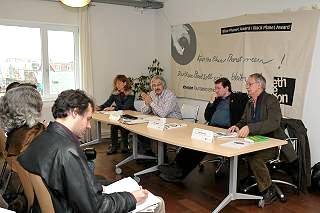 | Berlin, 20.11.2010 (1) - Verleihung des Preises der Ethecon-Stiftung an den Flüchtlings- und Menschenrechtsaktivisten Elias Bierdel - Pressekonferenz (Fotos: Gabriele Senft) |