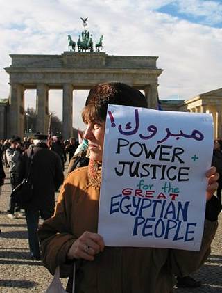 | Berlin, 12.2.2011 - Kundgebung "Für einen Wandel in Ägypten" (in geringer Auflösung) |