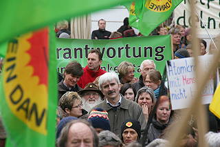 | Landshut, 19.3.2011 - "Count Down für Isar 1" - Monatliche Aktion des Bündnis für Atomausstieg vor dem Rathaus (Fotos: Werner Rauch) |