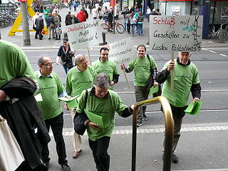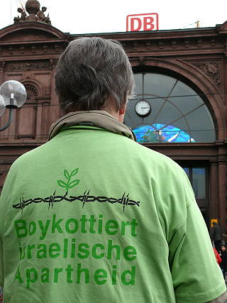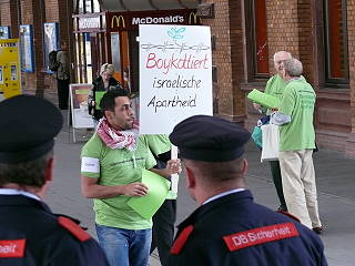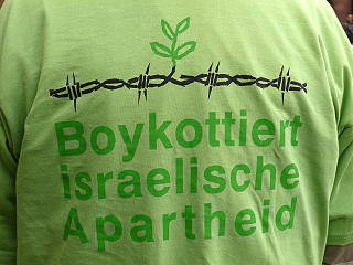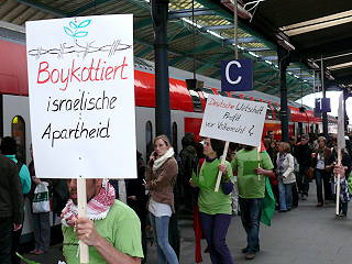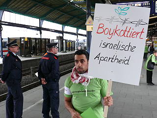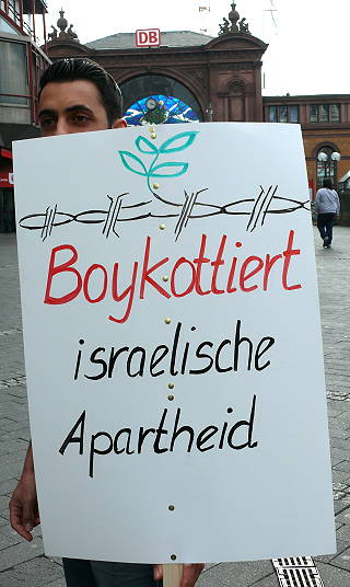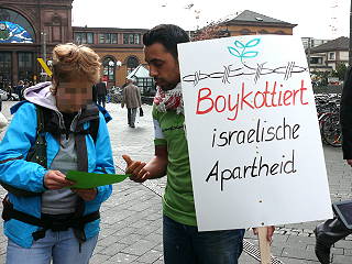 | Bonn, 30.3.2011 - "Boykottiert israelische Apartheid" - Aktion im Rahmen der Kampagne für Boykott, Kapitalentzug und Sanktionen (BDS) |