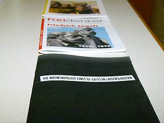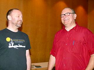 ![]() 5 David Rovics und Ernst Schwarz, Vorsitzender des Deutschen Freidenker-Verbandes Frankfurt |