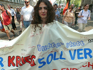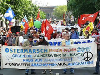 | Düsseldorf, 23.4.2011 (1) - Ostermarsch Rhein/Ruhr - "Gegen die Bundeswehr im Einsatz - Raus aus Afghanistan! Atomwaffen abschaffen - AKW abschalten" |