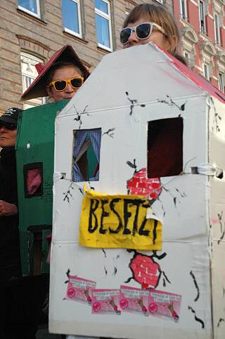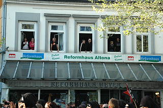 | Hamburg, 30.4.2011 - Demonstration für den Erhalt der Roten Flora und gegen die Räumung des Wagenplatzes ZOMIA (Fotos: hp) |