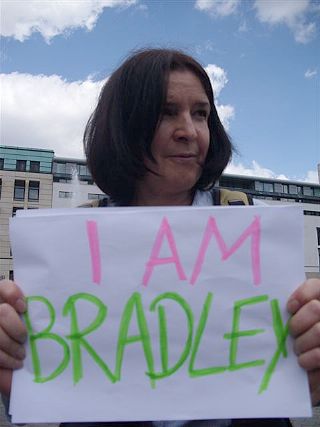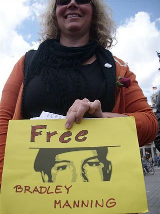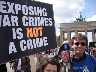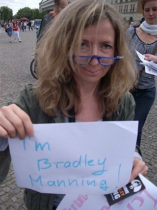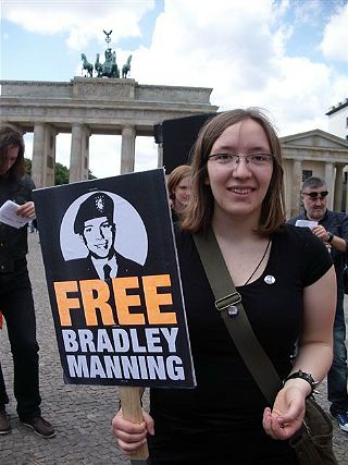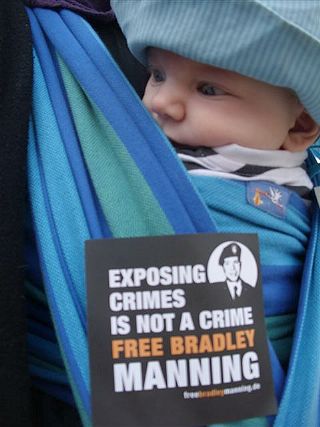 | Berlin, 28.5.2011 - Protest gegen die Inhaftierung von Bradley Manning, der ein entlarvendes Irak-Kriegs-Video an Wikileaks gegeben haben soll (Fotos in geringer Auflösung) |