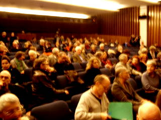 "...ein erfreuliches Beispiel war hier in Berlin das Volksbegehren gegen die Privatisierung der Wasserbetriebe, das musste gegen die etablierte Politik, gegen den rot-roten Senat durchgesetzt werden, ein Gesetz, was '99 vom rot-schwarzen Senat beschlossen worden war. Und das war, obwohl die Medien es nahezu boykottiert haben, ein erfolgreiches Bürgerbegehren, so dass eine Rekommunalisierung der Wasserbetriebe eingeleitet werden kann." | |