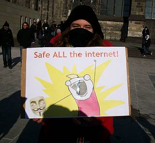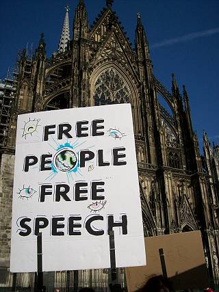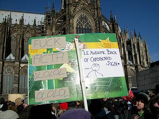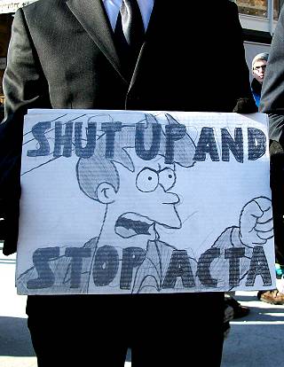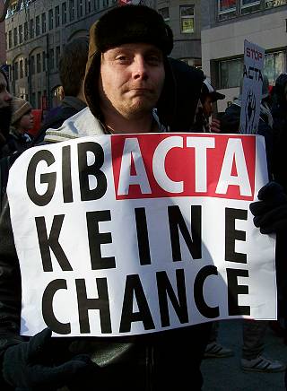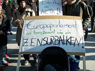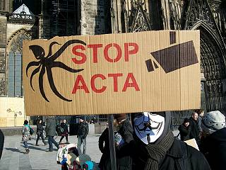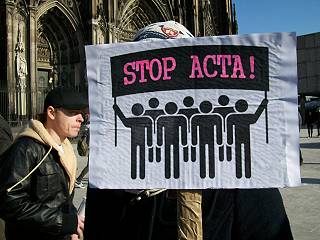 | Köln, 11.2.2012 - Protest gegen ACTA, das so genannte "Handelsübereinkommen zur Bekämpfung von Produkt- und Markenpiraterie" (Fotos: Klaus Franke) |