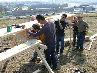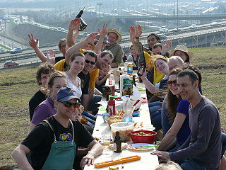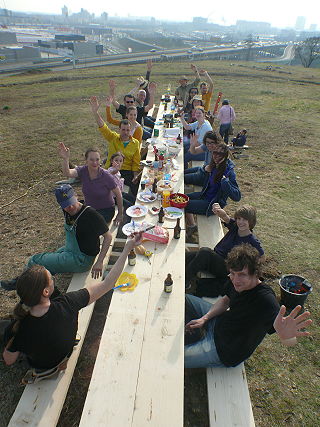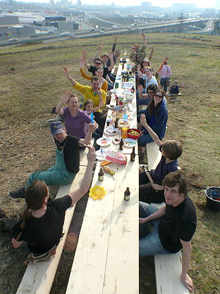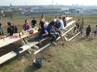 Auf dem Kalkberg tafeln - Eine weitere Aktion gegen die Hubschrauberstation auf dem Kölner Kalkberg |