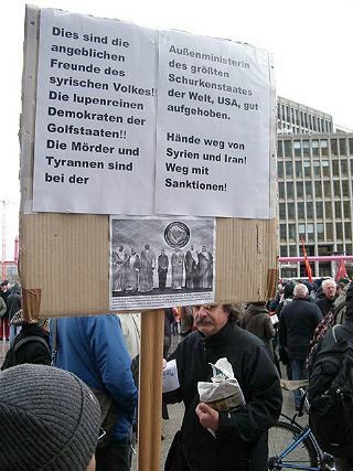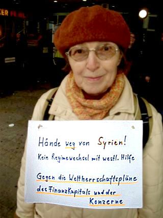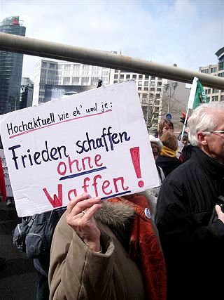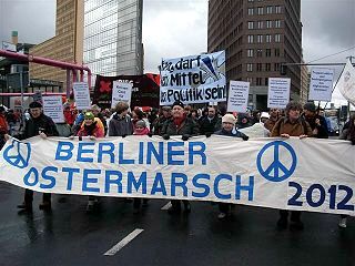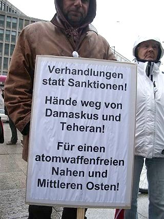 | Berlin, 7.4.2012 - "Krieg darf kein Mittel der Politik sein! - Hände weg von Damaskus und Teheran!" - Ostermarsch Berlin (Fotos in geringer Auflösung) |