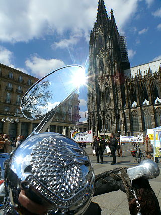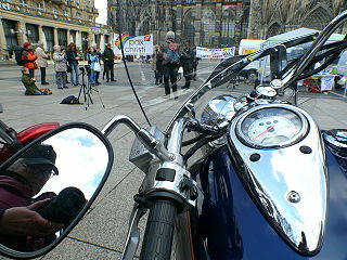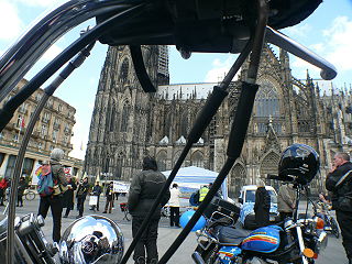 ![]() 38 MotorradfahrerInnen ohne Grenzen - auf der Fahrt vom Hiroshima-Nagasaki-Park zum Kölner Dom |