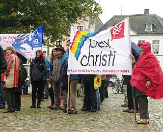 | Kalkar, 3.10.2012 - "Nato plant Krieg von deutschem Boden" - Demonstration gegen die NATO-Kommandozentrale in Kalkar (Fotos: Gisela Blomberg) |