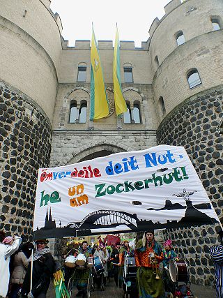 Köln, 12.2.2013 - "Ömverdeile dät not - he un am Zockerhut" - "Pappnasen Rotschwarz" beim Rosenmontagszug