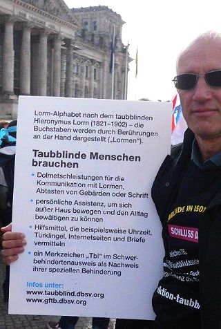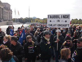 | Berlin, 4.10.2013 - Demonstration "Taubblinde in Isolationshaft - Null Rechte für Taubblinde - Schluss damit!" |