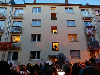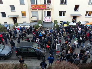 Köln, 20.2.2014 (2) - Erfolgreiche Blockadeaktion zur Abwendung der Zwangsräumung von Kalle Gerigks Wohnung in der Fontanestraße (Fotos: Klaus Franke)