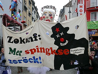 | Köln, 3.3.2014 - Rosenmontag: "Pappnasen Rot-Schwarz" mit "Hück – se spingkse wie jeck; Zokunf – mer spingkse zoröck" |