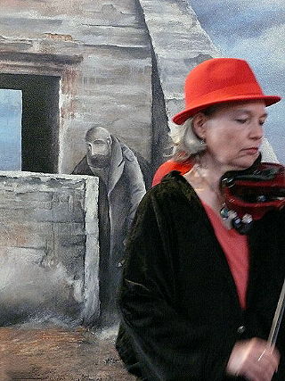 ![]() 5 Johanna Schmidt, Geige, vor den Bunker-Gemälden von Gerd Lebjedzinski |