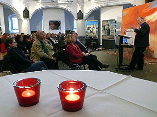 ![]() 9 Barbara Portsteffen, Gedicht-Rezitation, vor "Weltenbrand" von Gerd Lebjedzinski |