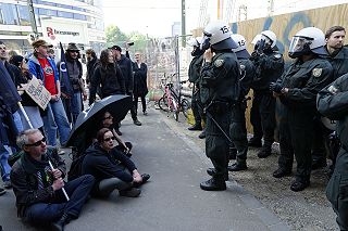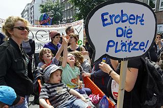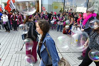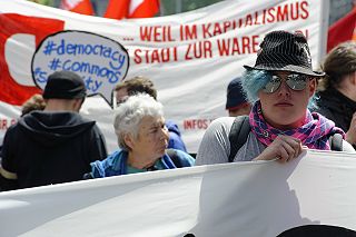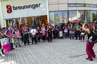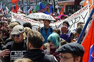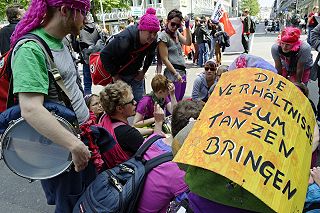 | Düsseldorf, 17.5.2014 - Blockupy-Protest im Rahmen der Europäischen Aktionswoche "Grenzenlos solidarisch – für eine Demokratie von unten!" (Fotos: Uwe Bitzel) |
