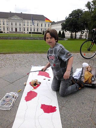 Orientierungsaktion vor dem Schloss Bellevue - Spielzeugpanzer für Bundespräsident Gauck