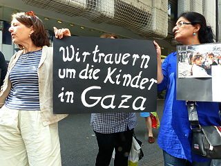 | Köln, 1.8.2014 (1) - Gedenkveranstaltung der "Frauen in Schwarz" für die Opfer des Gaza-Massakers (Fotos: Klaus Franke) |