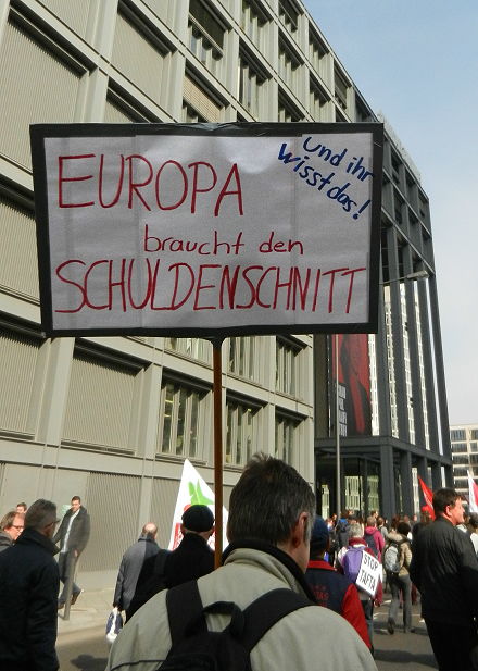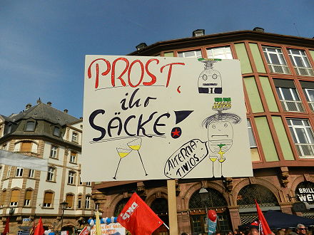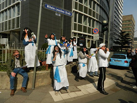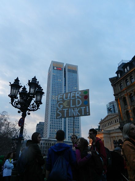 Dort wo die Viehwaggons in die KZs starteten - Proteste anlässlich der Einweihung des neuen EZB-Hauptquartiers |