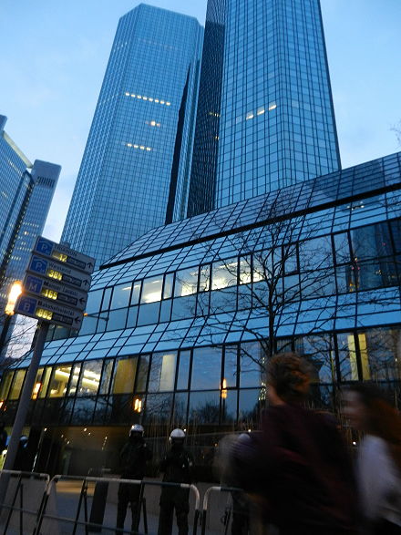 | Frankfurt, 18.3.2015 (4) - "Let’s Take Over The Party!" - Blockupy-Protest-Aktionen anläßlich der EZB-Eröffnungsfeier (Fotos: pb) |