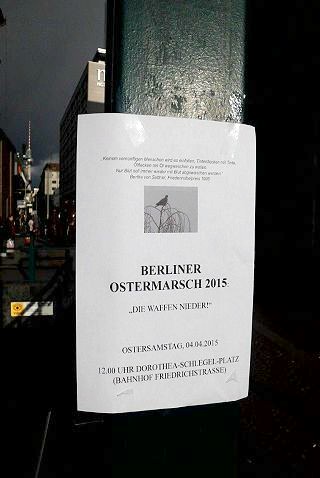 | Berlin, 4.4.2015 (2) - Ostermarsch - "Die Waffen nieder! Stopp der ideologischen Kriegsvorbereitung durch Politik und Medien!" |