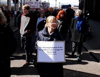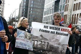 | Berlin, 4.4.2015 (3) - Ostermarsch - "Die Waffen nieder! Stopp der ideologischen Kriegsvorbereitung durch Politik und Medien!" |