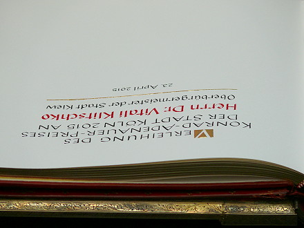 | Köln, 23.4.2015 - Verleihung des Konrad-Adenauer-Preises der Stadt Köln an Kiews Bürgermeister Vitali Klitschko und der Protest dagegen |