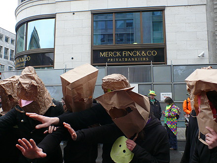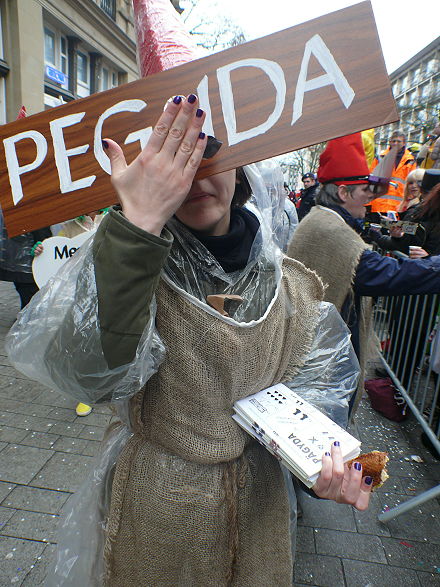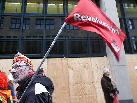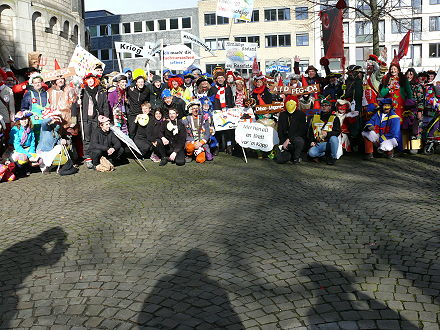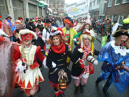 Gegen braune Halunken - Pappnasen Rot-Schwarz beim Rosenmontagszug in Köln |