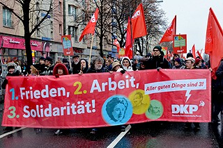 Berlin, 15.1.2017 - Demonstration zur Gedenkstätte der Sozialisten im Rahmen der Liebknecht-Luxemburg-Ehrung (Fotos: Peter Asmussen)